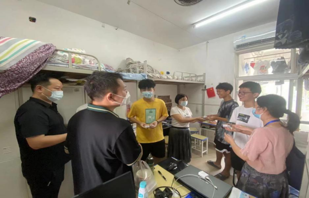 在学生宿舍里,院领导们为同学们分发了美味的月饼并和大家进行了亲切交谈,详细询问了同学们的学习和生活情况,号召同学们做好个人疫情防护,勉励同学们珍惜美好的大学时光,努力学习。